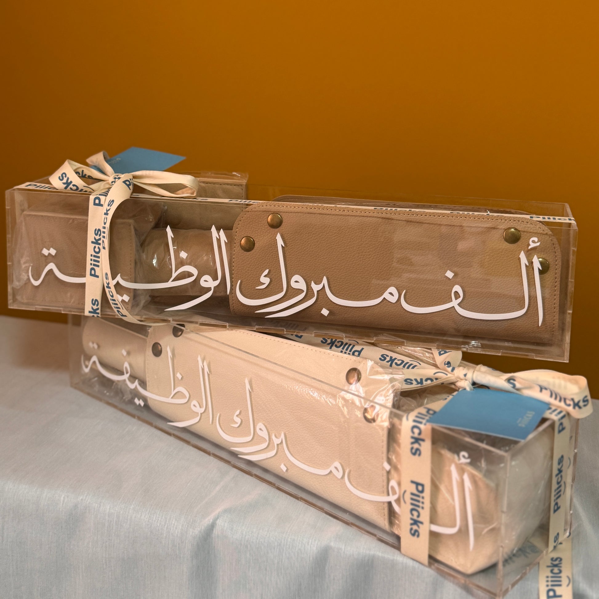 بوكس من الاكريلك مطبوع عليه ( ألف مبروك الوظيفة )